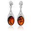 925 Sterling Silver & Genuine Baltic Amber Celtic Drop Dangle Earrings - GL1052
