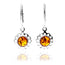 925 Sterling Silver & Genuine Baltic Amber Flowers Drop Dangle Earrings - AE09