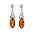 925 Sterling Silver & Genuine Baltic Amber Celtic Drop Earrings - GL143