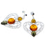 925 Sterling Silver & Baltic Amber Large Drop Hearts Earrings - M643