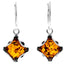925 Sterling Silver & Genuine Baltic Amber Classic Square Dangling Earrings - 5431