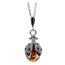 925 Sterling Silver & Genuine Baltic Amber Cute Ladybird Pendant- K226