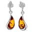 925 Sterling Silver & Genuine Baltic Amber Teardrop Modern Drop Earrings - GL1012