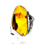 925 Sterling Silver & Genuine Cognac Baltic Amber Unique Exclusive Adjustable Ring - RG0763