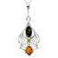 925 Sterling Silver & Genuine Baltic Amber 3 Stones Modern Pendant - M2007