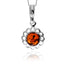 925 Sterling Silver & Genuine Baltic Amber Flower Small Pendant - 775