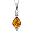 925 Sterling Silver & Genuine Baltic Amber Teardrop Classic Pendant - AA247