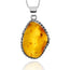 925 Sterling Silver & Genuine Lemon Baltic Amber Exlusive Unique Pendant - PD2647