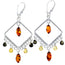 925 Sterling Silver & Genuine Baltic Amber Large Drop Earrings - 8205