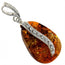925 Sterling Silver & Genuine Cognac Baltic Amber Exclusive Unique Pendant with Cubic Zirconia stones - PD2077