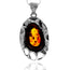 925 Sterling Silver & Genuine Cognac Baltic Amber Exlusive Unique Pendant - PD2569