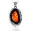 925 Sterling Silver & Genuine Cognac Baltic Amber Exlusive Unique Pendant - PD2572