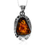 925 Sterling Silver & Genuine Cognac Baltic Amber Exlusive Unique Pendant - PD2574