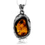 925 Sterling Silver & Genuine Cognac Baltic Amber Exlusive Unique Pendant - PD2575