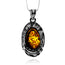 925 Sterling Silver & Genuine Cognac Baltic Amber Exlusive Unique Pendant - PD2580
